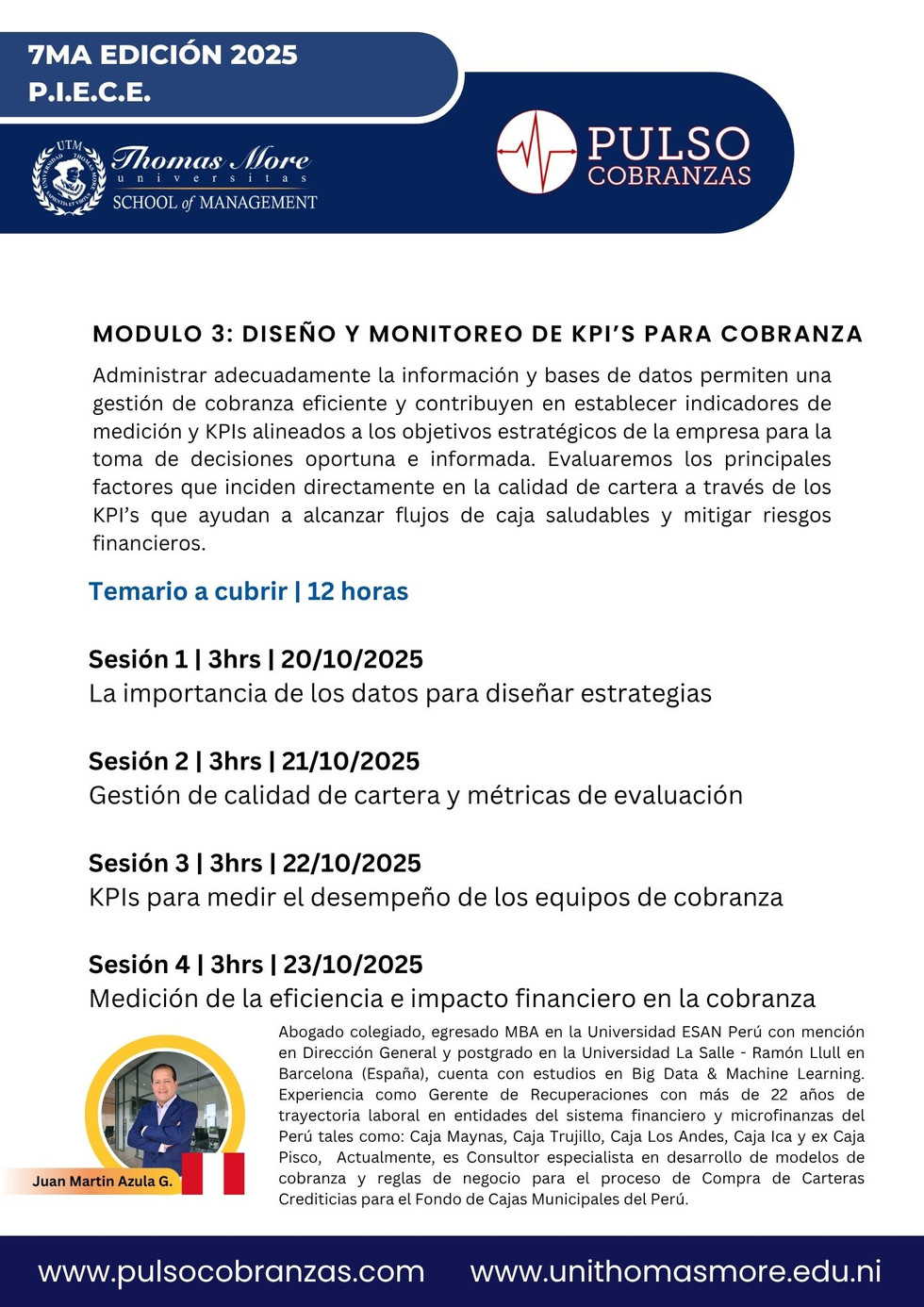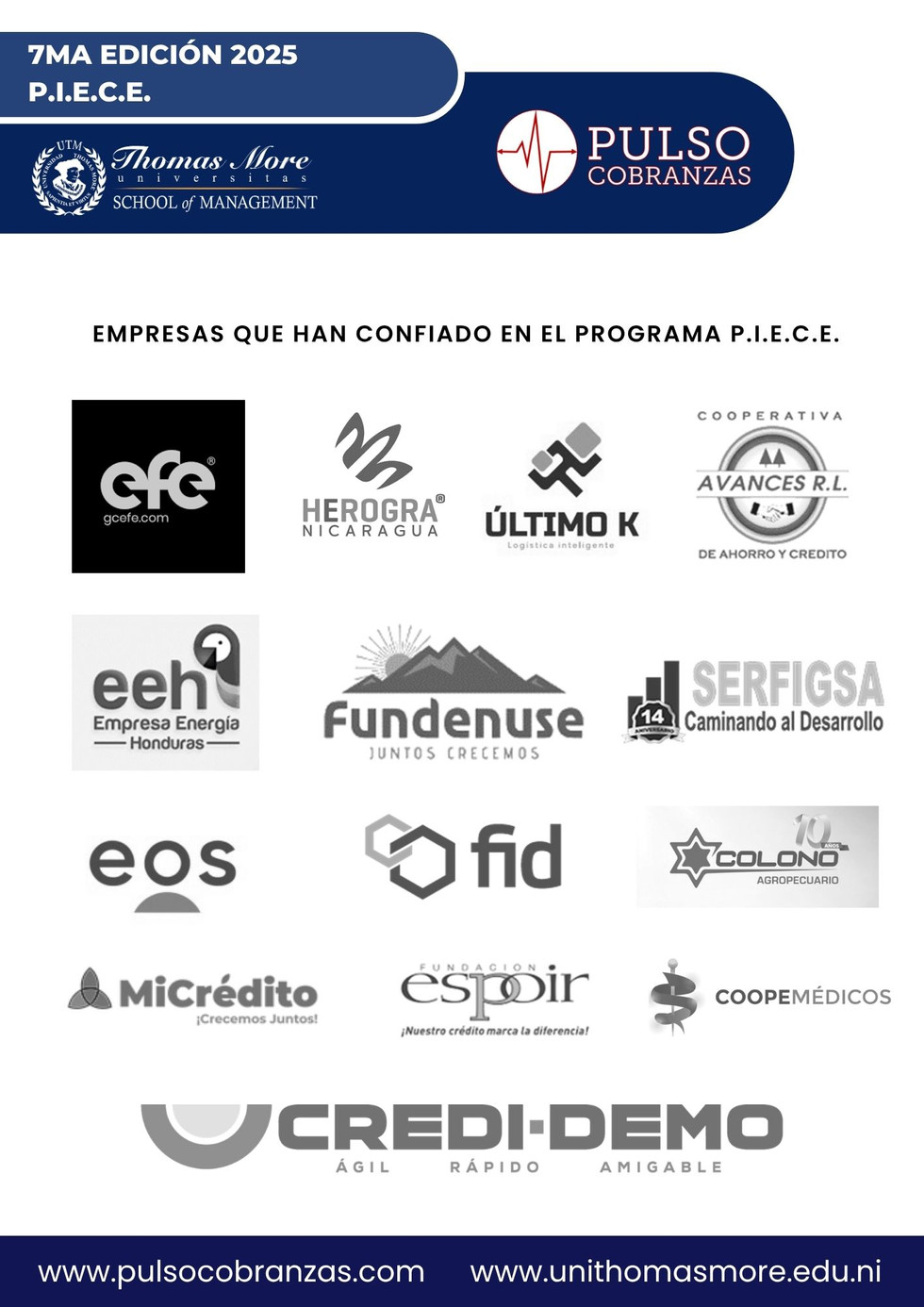 Pulso Cobranzas SA, empresa consultora especializada en procesos de crédito y cobranzas en Nicaragua presenta su “Programa Internacional de Estudios en Cobranza Estratégica” dirigido a profesionales cuyas funciones están vinculadas a dirigir o administrar procesos de cobranzas tanto de instituciones financieras como comerciales.